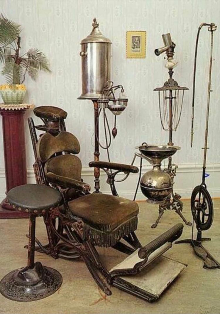 A definição do consultório coincidiu com as primeiras cadeiras expressamente fabricadas para esta finalidade. A mais antiga, talvez em todo o mundo, foi a utilizada nos Estados Unidos por Josiah Flagg, de 1790 a 1812. A iluminação na maioria das vezes vinha da janela, em cuja direção estava colocada a cadeira.